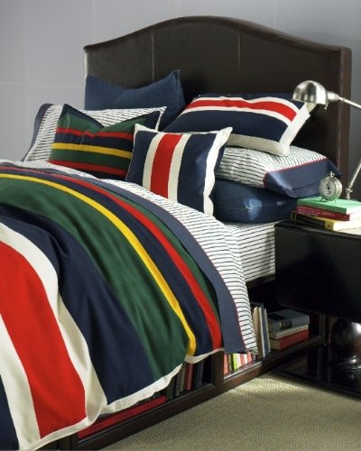 Tommy Hilfiger Andover collection features pieced multicolor rugby stripes mixed with All American Denim. The sheets are 250 thread count 100-percent rung spun combed cotton for added softness. The Comforter, Sham and Dec pillow are fully reversible to a pieced red, white and blue stripe.