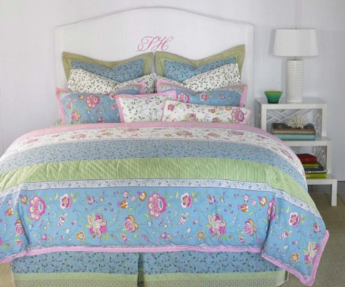 Tommy Hilfiger Emma collection features all over multicolor floral print sheets, a floral pieced comforter is a modern translation of a traditional all American quilt. The comforter reverses to a green foulard print. The Shams feature large aqua florals with quilted stripes and flange. This complete bedding ensemble with instantanly update your bedroom!