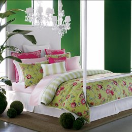 Traditional florals get girly in the Rooftop Terrace bedding collection by Tommy Hilfiger. The Tommy Hilfiger Rooftop Terrace bedding collection features a bright palette of fern green, raspberry and turquoise give a modern allure to luxurious textures an