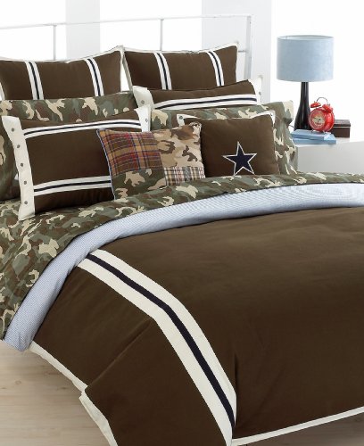 - Collection includes comforter set, European sham, and three decorative pillows. To accessorize this collection, add the Tommy Hilifiger 200-thread count Novelty Print sheet set in camouflage.